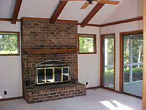 new paint, new carpet; a cozy kitchen - family room with fireplace